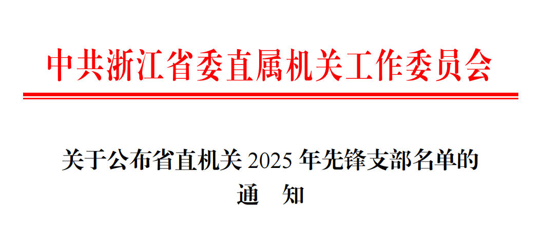 近日,省直机关工委印发《关于公布省直机关2025年先锋支部名单的通知》,浙茶集团九宇有机党支部获评省直机关2025年先锋支部。