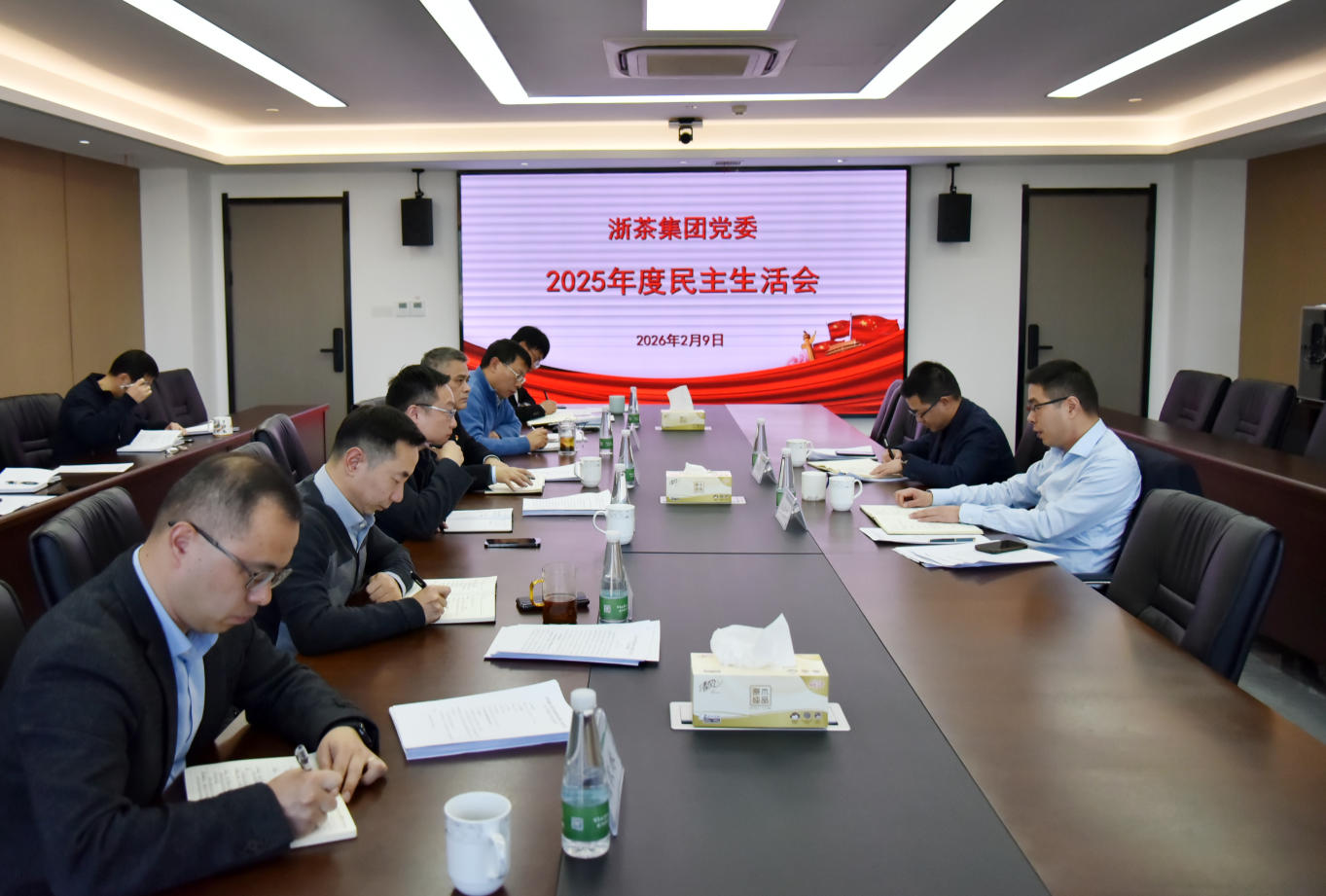 俞晓东副书记在点评时指出,本次民主生活会准备充分,体现出准、深、实的特点,问题贴合实际,剖析根源深入,改进举措可操作性强。同时还指出存在的不足,班子之间距离“红红脸、出出汗”的要求还有差距,要进一步统一思想、抓好整改,谋划落实好2026年工作。他强调,一是要把民主生活会的成效体现在登高望远、谋划“十五五”发展上。浙茶集团正处于良好发展阶段,具备谋划长远发展的条件,要对标行业上市公司,着力提升经营和专业影响力;二是要把民主生活会的成效体现在有辨识度的高质量发展上。浙茶集团要坚定做细分领域领跑者的定位,梳理核心优势,强化内部协同,努力打造有辨识度的高质量发展路径;三是要把民主生活会的成效体现在有力有效的内控管理上。做好存量风险资产处置工作,提升财务管理能力,抓好亏损企业治理,加强审计力量建设;四是要把民主生活会的成效体现在建强担当有为的党委班子上。要强化管党治党主体责任,深入一线和走出去拓展视野,建强中层干部队伍等,提升履职能力和担当作为。